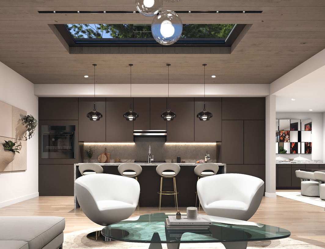 The Sunland Home was designed on a site in Atlanta, GA as a concept to convey the idea that even small budgets can accomplish a touch of luxury. This 1-story plan includes 3 bedrooms, 2.5 baths, office, laundry, entertainment room, outdoor grill area, and pool amenity. Additionally, a unique sculpture was designed adjacent to the entry door to give the effect that spherical elements are falling from the light fixture within the large overhang!
